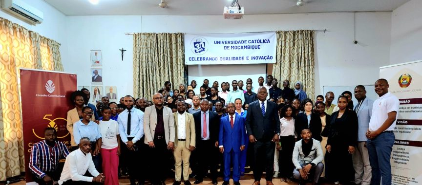 A Faculdade de Direito da Universidade Católica (UCM), na Cidade de Nampula, foi o local escolhido para a realização do evento, no mês de Novembro último, sob o lema “50 anos do Constitucionalismo Moçambicano”, com a participação de altas individualidades locais, venerandos juízes conselheiros do Conselho Constitucional, estudantes e público em geral. O Governador da província de Nampula, Eduardo Abdula, foi quem procedeu à abertura do seminário, tendo o Vice-Reitor da Universidade Católica, Prof. Doutor Nelson Amade, em representação do Reitor da Universidade Católica, Prof. Doutor Padre Filipe Sungo, e o Venerando Juiz Conselheiro do Conselho Constitucional Domingos Hermínio Cintura, em representação da Veneranda Presidente do Conselho Constitucional, Prof.a Doutora Lúcia da Luz Ribeiro, igualmente proferido discursos de ocasião.